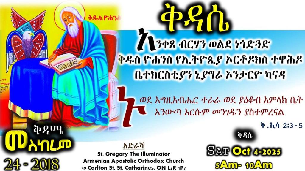 ቦታ/Venue፡ St. Gregory The Illuminator Armenian Apostolic Orthodox Church, 49 Carlton St, St. Catharines, ON L2R 1P7
